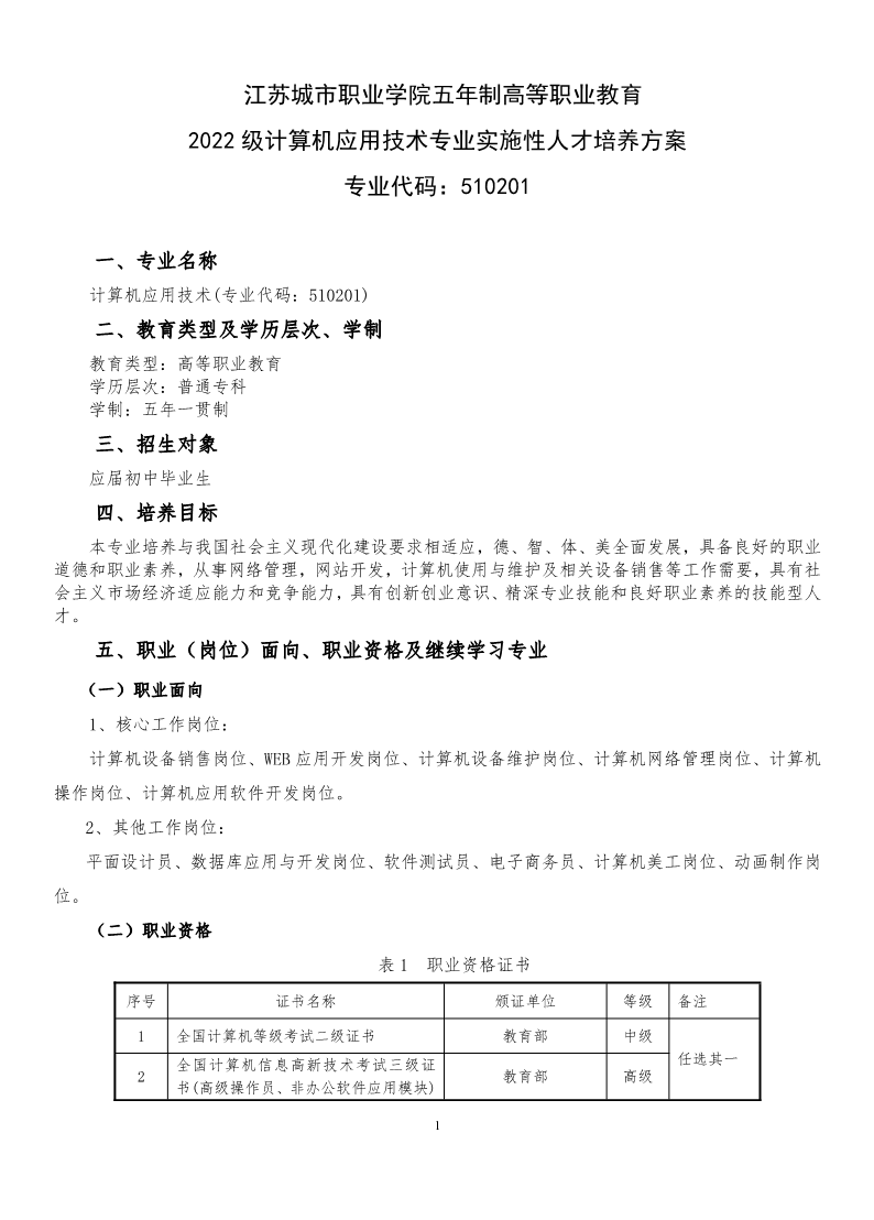2022级计算机应用技术专业实施性人才培养方案