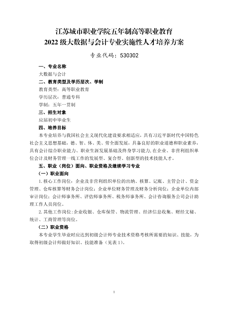2022级大数据与会计专业实施性人才培养方案