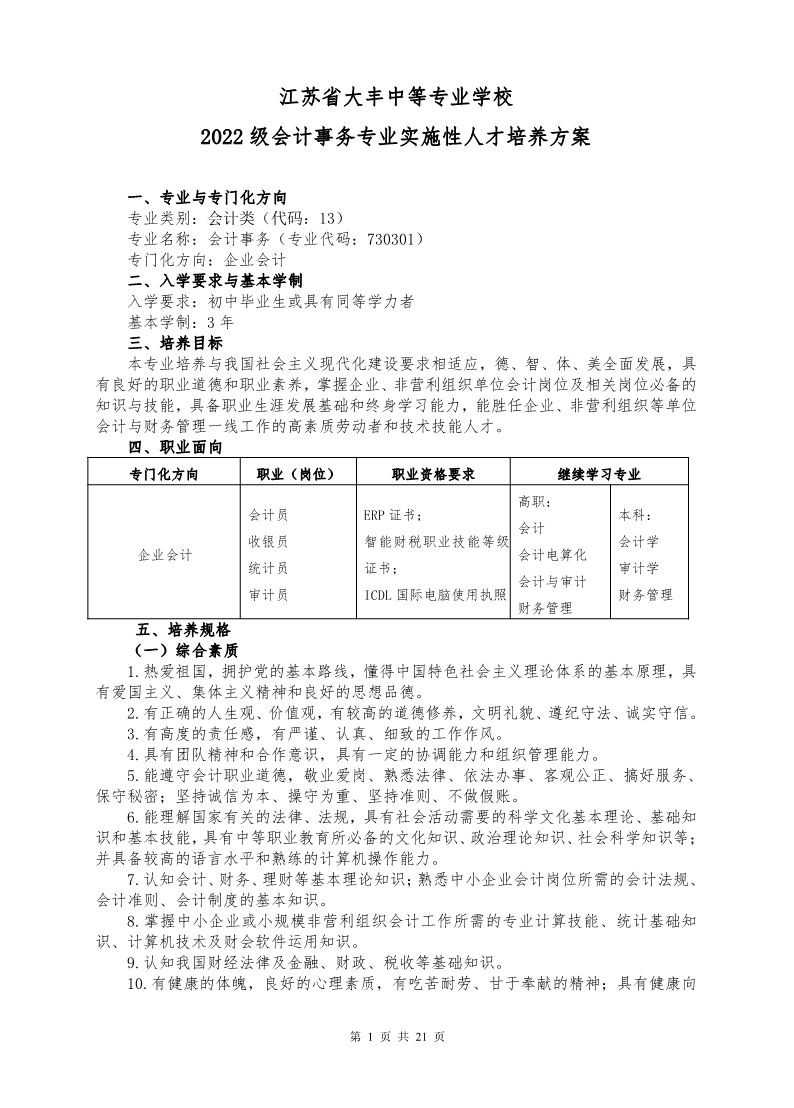 2022级会计事务专业实施性人才培养方案