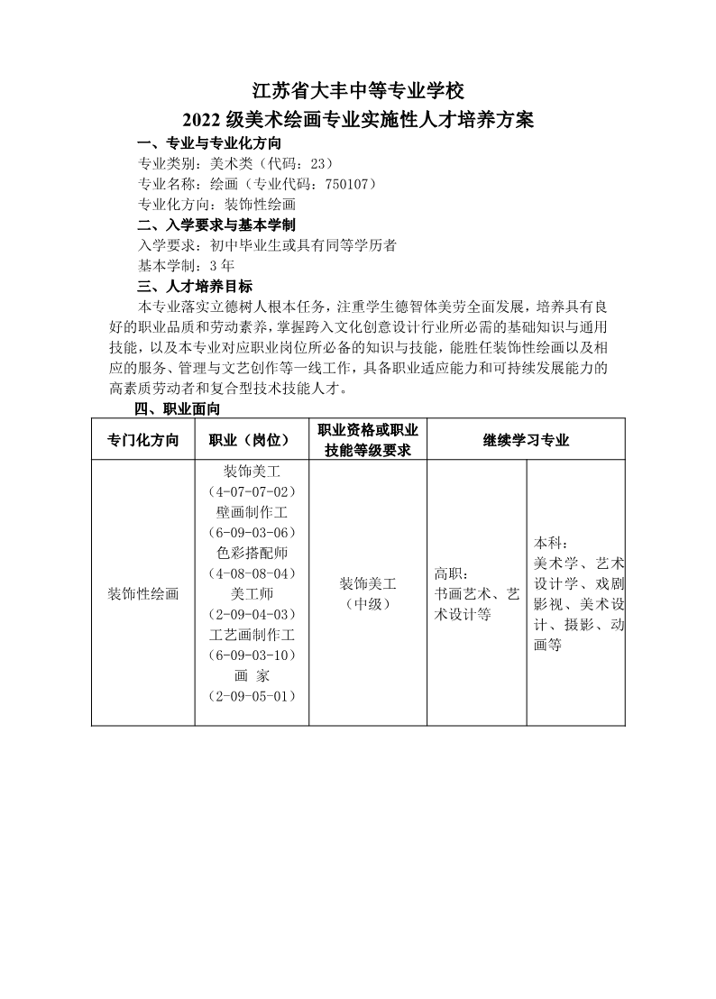 2022级美术绘画专业实施性人才培养方案