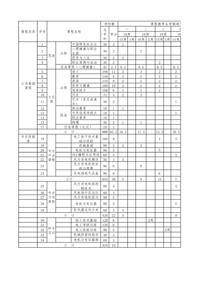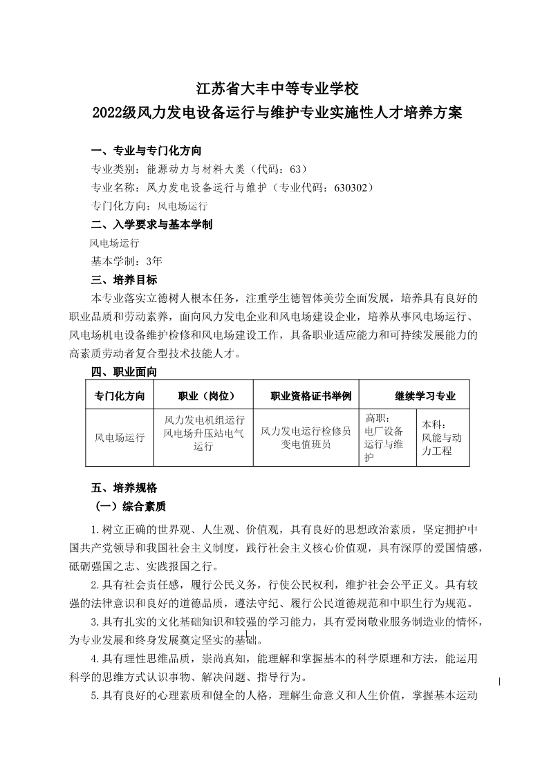 2022级风力发电设备运行与维护专业实施性人才培养方案