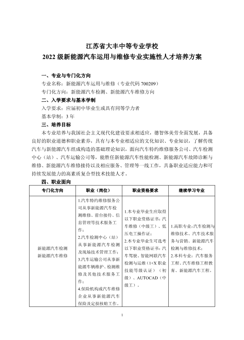 2022级新能源汽车运用与维修专业实施性人才培养方案