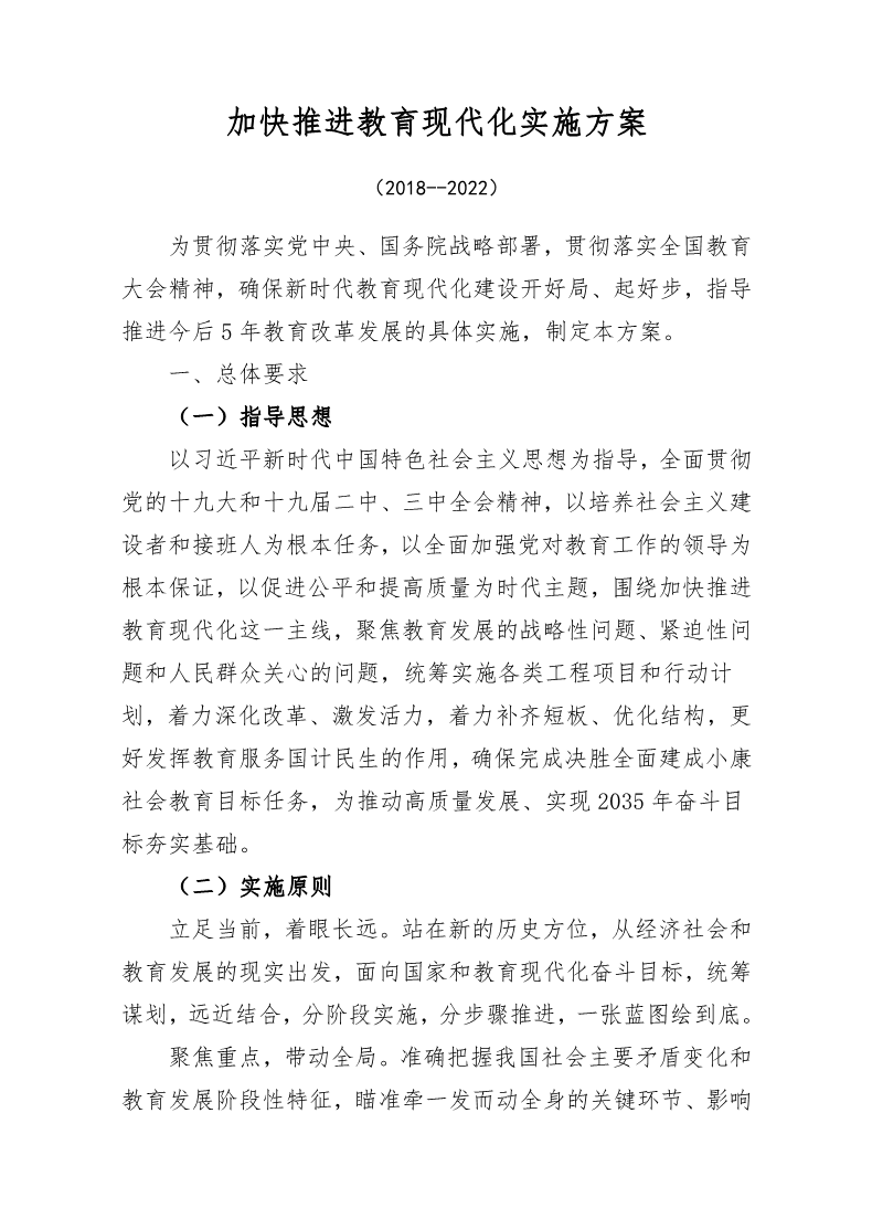 加快推进教育现代化实施方案(2019-2022年)