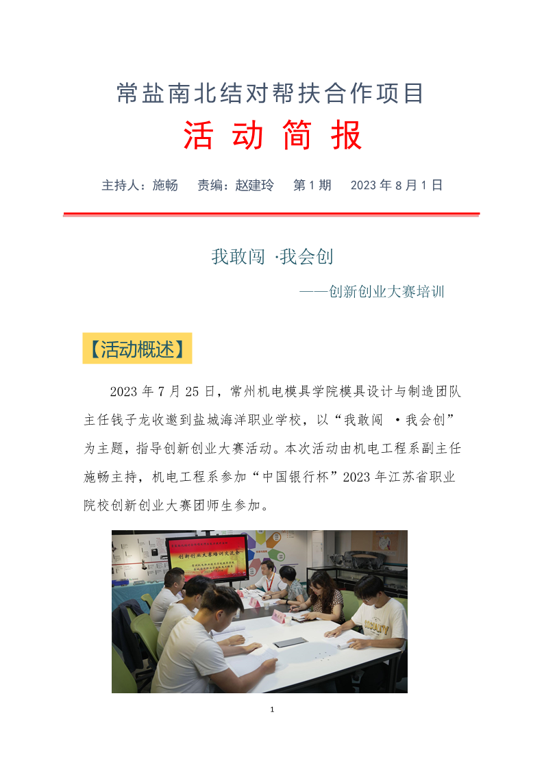 常州盐城南北结对帮扶合作项目能力提升第一次活动简报
