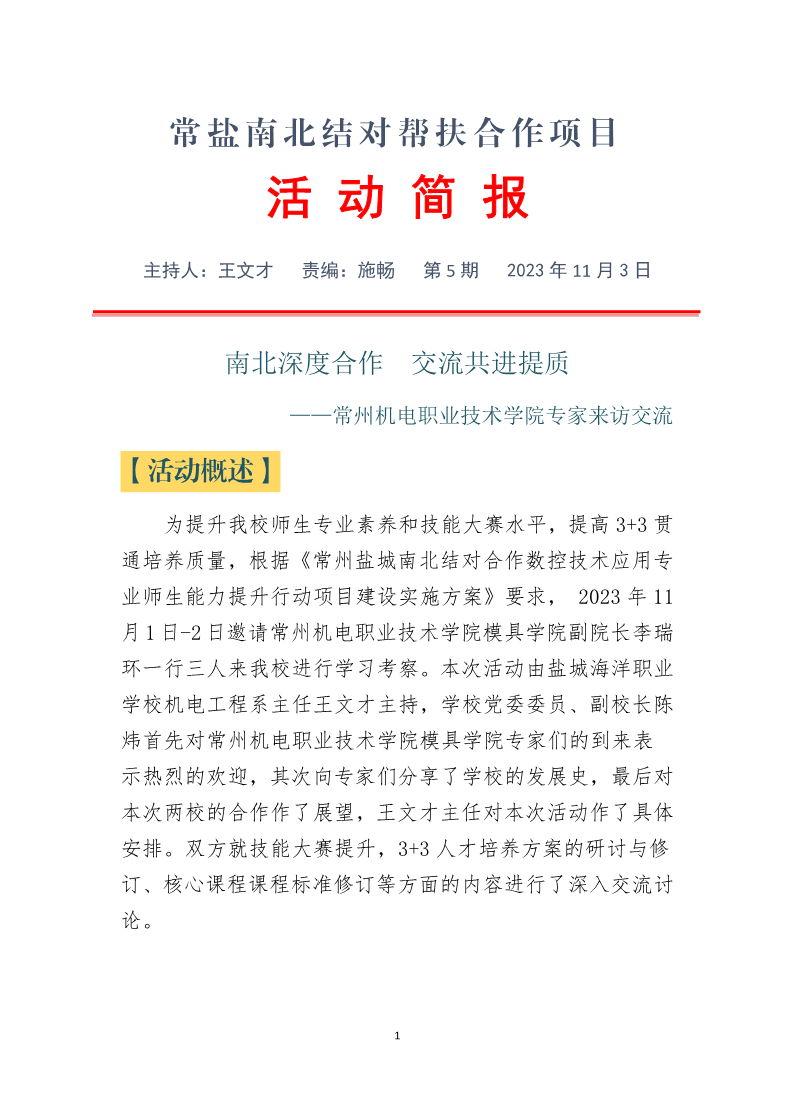 常州盐城南北结对帮扶合作项目能力提升第五次活动简报