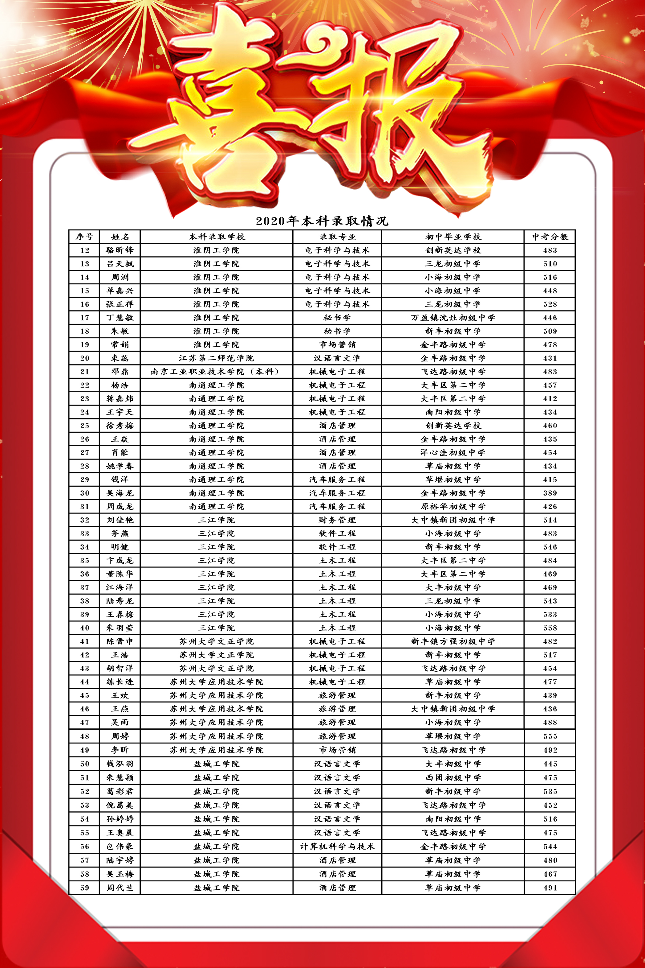 喜报│大丰中专2020年升学考试再创佳绩