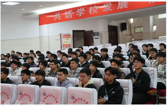 仪式结束后,宋银生以“智造未来”为主题开展专题讲座,结合企业自主研发的2000吨全自动温锻生产线案例,剖析机械制造业智能化、绿色化趋势,并鼓励学生以工匠精神锤炼技能,争做行业新锐。