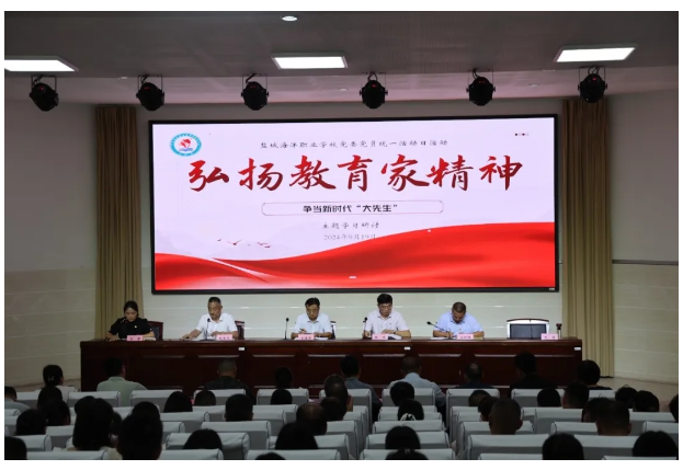 10月27日,盐城海洋职业学校党委在学校图文中心礼堂举行“弘扬教育家精神 我为党旗添光彩”党员教师主题演讲比赛,来自学校四个教学支部的12名党员教师参赛,全体党员、学生团员代表参加活动。