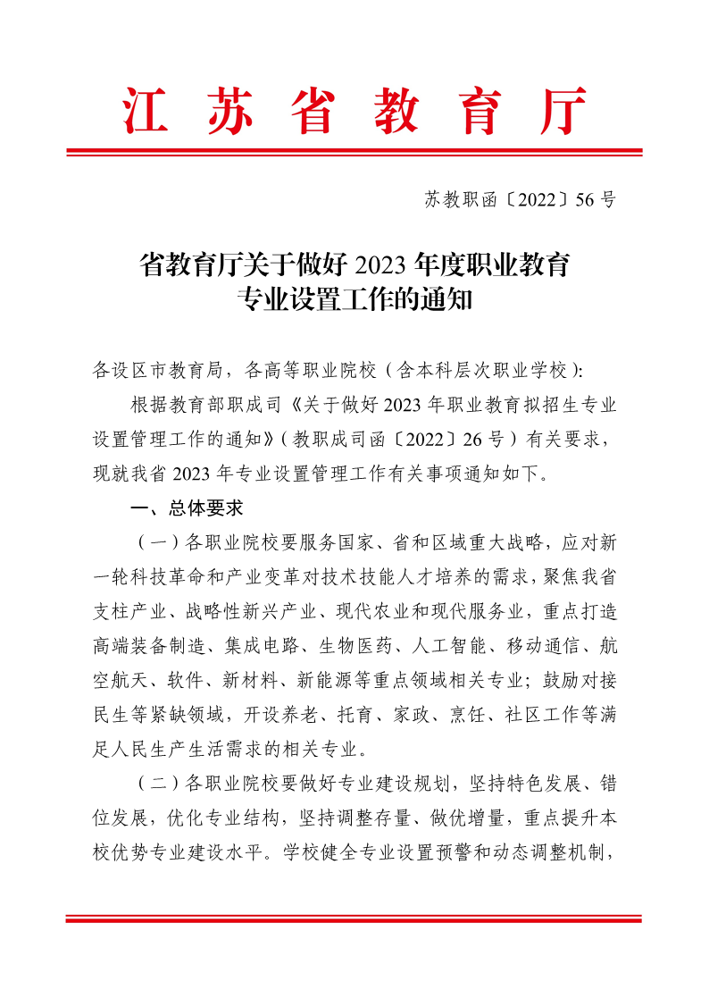 省教育厅关于做好2023年度职业教育专业设置工作的通知