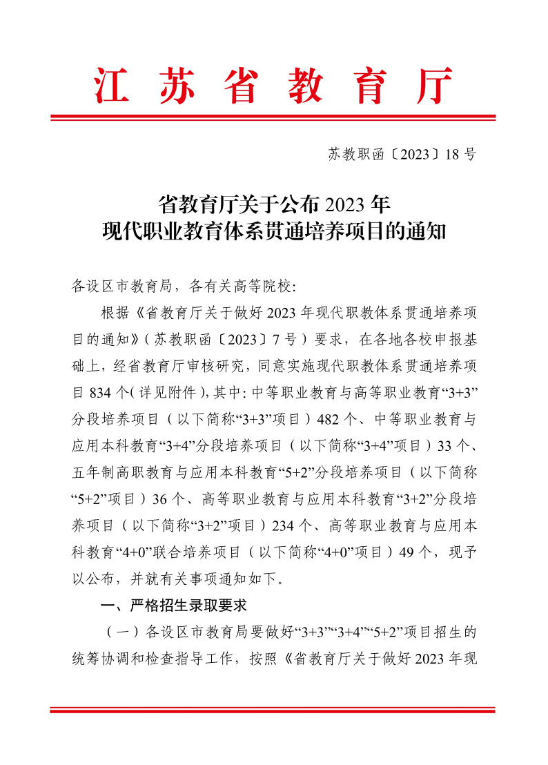 省教育厅关于公布2023年现代职业教育体系贯通培养项目的通知